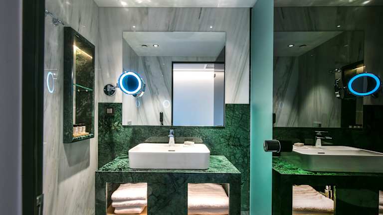 Die klimatisierten Zimmer sind mit modernem Komfort ausgestattet und bieten einen Schreibtisch, eine Kaffeemaschine, einen Kühlschrank, eine Minibar, einen Safe und einen Flachbild-TV. Jedes Zimmer verfügt über ein eigenes Badezimmer mit Dusche. Viele Zimmer sind mit einem Balkon ausgestattet. Zur Ausstattung gehören zudem Wasserkocher, Bettwäsche und Handtücher.