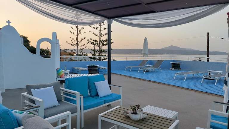 Das Dimitra's Sea-Crafts Boutique Studios befindet sich im charmanten Dorf Kalyves, nur wenige Gehminuten von traditionellen Tavernen, gemütlichen Cafés und einem Supermarkt entfernt. Hier können Sie das authentische griechische Leben hautnah erleben und die lokalen Spezialitäten genießen. Die malerische Stadt Chania mit ihrem venezianischen Hafen und den engen Gassen erreichen Sie nach einer kurzen Fahrt von 18 km. Der internationale Flughafen Chania ist nur 25 km entfernt.