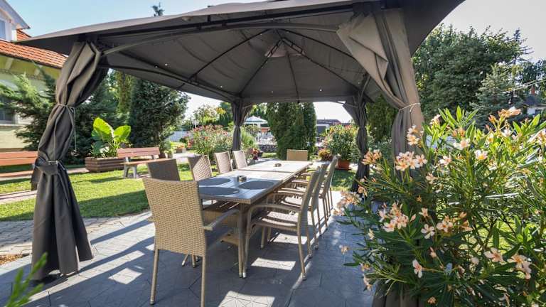 Im Dio Apartmanok können Sie Ihre eigenen Mahlzeiten zubereiten und im gemütlichen Essbereich Ihrer Wohneinheit genießen. Es gibt auch einen Garten mit Grillmöglichkeiten, so dass Sie im Freien speisen können. Alternativ finden Sie in der Umgebung verschiedene Restaurants und Cafés, in denen Sie lokale Spezialitäten probieren können.