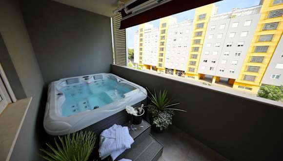 Die Ferienwohnung umfasst 2 Schlafzimmer, ein Wohnzimmer sowie eine voll ausgestattete Küche, die mit einem Kühlschrank und einer Kaffeemaschine ausgestattet ist. Das Badezimmer verfügt über eine Dusche und einen Whirlpool. Handtücher und Bettwäsche sind in der Unterkunft vorhanden. Die Klimaanlage sorgt für zusätzlichen Komfort.