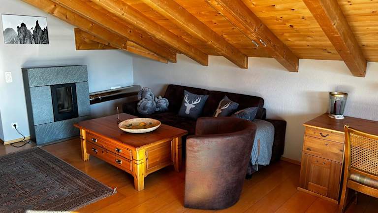 Die Ferienwohnung umfasst zwei Schlafzimmer und ein Badezimmer. Zur Ausstattung gehören Bettwäsche, Handtücher, ein Flachbild-TV mit Satellitenkanälen, ein Essbereich, eine voll ausgestattete Küche sowie ein Balkon mit Bergblick. Die Unterkunft ist als Nichtraucherunterkunft ausgewiesen.