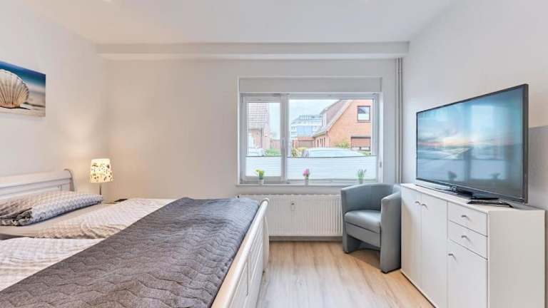 Die Unterkunft befindet sich in Büsum, 500 Meter vom Badestrand Perlebucht entfernt. Die Umgebung bietet eine ruhige Lage mit einem Garten. In der Nähe liegen Attraktionen wie Phänomania Büsum (2 km), Stadttheater Heide (20 km) und Multimar Wattforum (37 km). Der Westerhever Leuchtturm ist 43 km entfernt. Der Flughafen Hamburg ist 118 km von der Unterkunft entfernt.