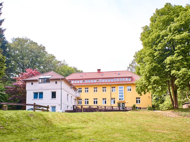 Auf dem Außenbereich warten eine Lagerfeuerstelle und ein Grillplatz, ein großes Außengelände mit Bolzplatz, Volleyballfeld und Spielplatz sowie ein großes, hauseigenes Waldstück für Abenteuerspiele. Es sind nur 15 Minuten Fußweg zum Ort Porta Westfalica.