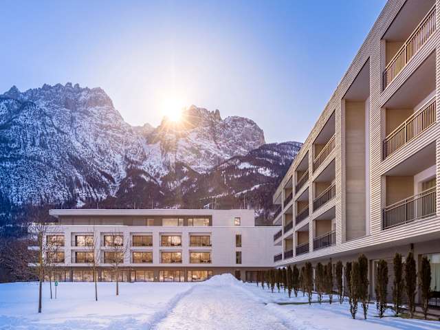 Blühende Wiesen, dichte Nadelwälder, strahlende Sonne, blauer Himmel und im Hintergrund türmen sich die Lienzer Dolomiten. Der Blick auf diese einzigartige Naturlandschaft ist atemberaubend. An ihrem Fuß liegt nur wenige Kilometer von der malerischen Sonnenstadt Lienz (Osttirol, Österreich) entfernt das Dolomitengolf Resort mit seinem On-Course-Domizil Dolomitengolf Suites.