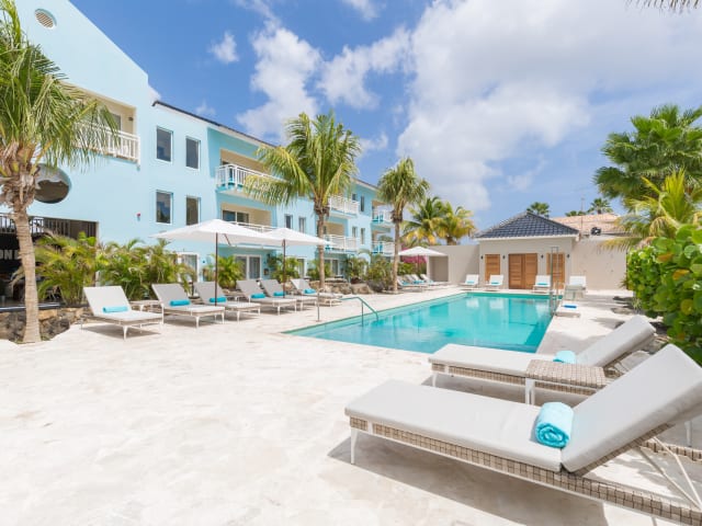 Das Hotel bietet 12 Suiten, 6 Hotelzimmer, ein geräumiges Studio und eine Familien Suite, die ein Hotelzimmer mit einer Suite durch eine Verbindungstür kombiniert. Die Unterkünfte sind geschmackvoll eingerichtet und bieten jeden Komfort. Von Ihrem Balkon oder Terrasse aus können Sie die karibische Brise und Atmosphäre genieβen. Alle Suiten sind leicht zugänglich und können auf Ihren Wunsch hin mit zusätzlichen Hilfsmitteln ausgestattet werden. Unsere stilvoll eingerichteten Unterkünfte zeichnen sich durch viel Raum, Tageslicht und schlichte Eleganz aus. Die beeindruckende Einrichtung ist das Ergebnis von einer harmonischen Symbiose von modernen Details, Ausstattung und Design.