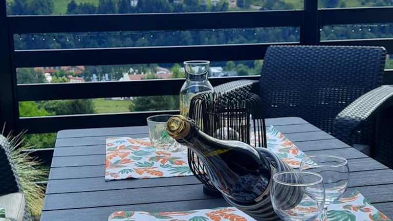 Die Ferienwohnung beinhaltet eine Gemeinschaftsküche, die mit einem Kühlschrank und einem Geschirrspüler ausgestattet ist. Es sind keine weiteren Verpflegungsmöglichkeiten angegeben.