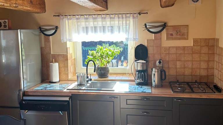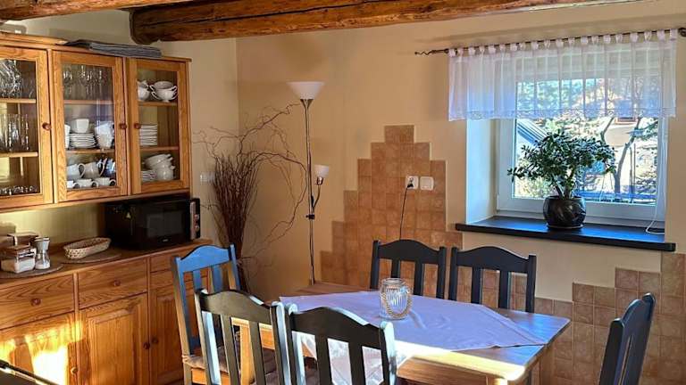 Das Ferienhaus verfügt über eine Gemeinschaftsküche, in der Sie Ihre eigenen Mahlzeiten zubereiten können. Grillmöglichkeiten stehen ebenfalls zur Verfügung, um im Freien zu kochen und zu grillen. In der Umgebung gibt es auch Restaurants und Cafés, in denen Sie lokale Spezialitäten genießen können.
