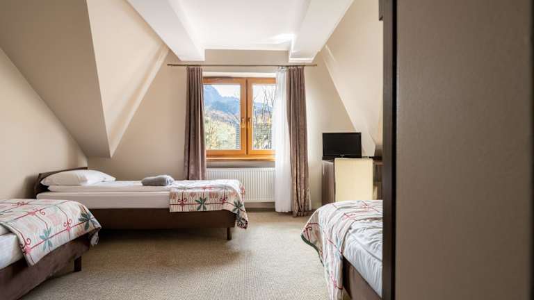 Die Zimmer im Dom Wczasowy Grań sind modern und komfortabel eingerichtet. Jedes Zimmer verfügt über einen Flachbild-TV, einen Wasserkocher und einen Minikühlschrank. Ein eigenes Bad mit Dusche, Haartrockner und Handtüchern ist ebenfalls vorhanden. Die Zimmer bieten den Gästen einen angenehmen Rückzugsort nach einem ereignisreichen Tag.