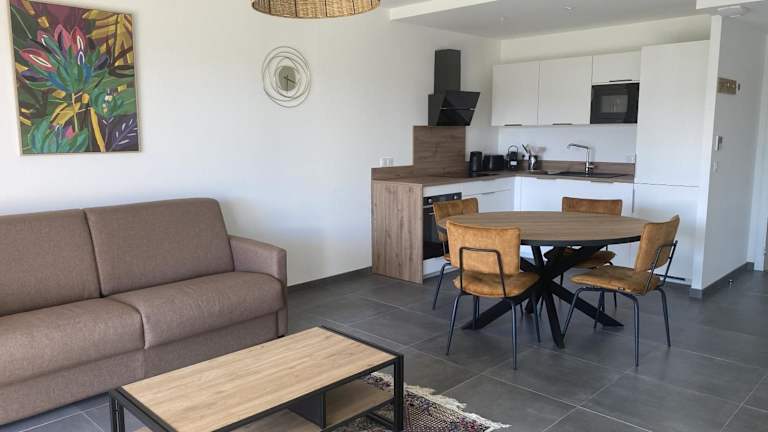 Die Wohnung verfügt über ein Schlafzimmer und ist klimatisiert. Ausgestattet ist sie mit einem Flachbild-TV sowie einer Küche, die mit einem Kühlschrank und Geschirrspüler versehen ist. In der Unterkunft werden Handtücher und Bettwäsche bereitgestellt. Es sind Nichtraucherzimmer vorhanden, und die Einrichtung ist rollstuhlgerecht.