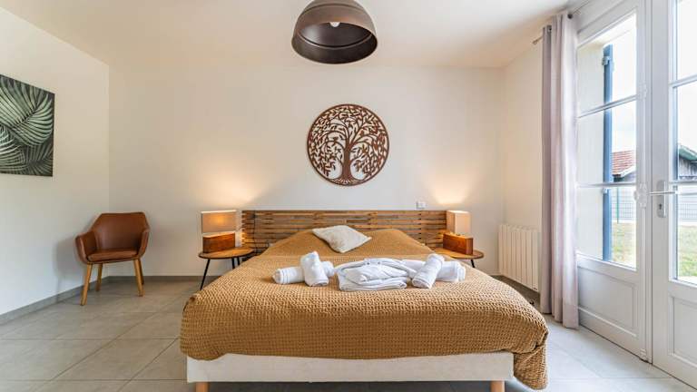 Das Domaine du Flamand - Gîtes du Flamand côté Piscine befindet sich in Naujac-sur-Mer, in der Nähe der Mündung der Gironde. Die Umgebung bietet eine malerische Landschaft und ist ideal zum Radfahren und Spazierengehen. In der Nähe befindet sich auch die Basilika Notre-Dame de la Fin des Terres, die einen Besuch wert ist. Der Flughafen Bordeaux-Mérignac ist gut erreichbar und bietet Anbindung an verschiedene nationale und internationale Ziele.