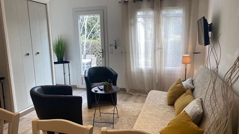 Eigenes Apartment mit Terrasse und Grill. Sehr saubere und geräumige Zimmer. Es gibt eine sehr schöne Außenanlage mit einem großen Pool.