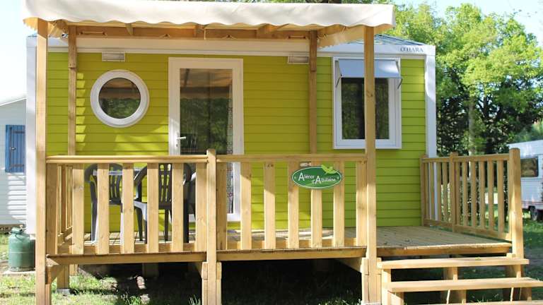 Die Mobilheime auf dem Campingplatz Les Acacias sind komfortabel und gemütlich eingerichtet. Jedes Mobilheim verfügt über eine Heizung, Holzböden und ein Wohnzimmer mit einem bequemen Sofa und einem Flachbild-TV. Das private Badezimmer ist mit einer Dusche ausgestattet und in der offenen Küche finden Sie alles, was Sie für die Zubereitung Ihrer Mahlzeiten benötigen, einschließlich Geschirr, Mikrowelle und Kühlschrank. Ein separater Essbereich ermöglicht es Ihnen, Ihre Mahlzeiten in Ruhe zu genießen.