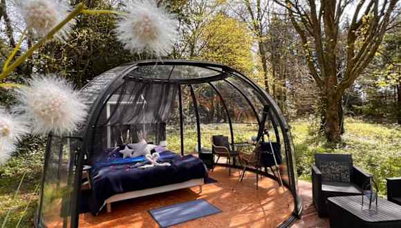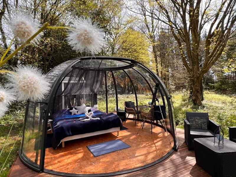 Das Dôme Atmo'sphère, la tête dans les étoiles avec accès piscine ist eine luxuriöse Unterkunft in Saint-Évarzec, die mit einem saisonalen Außenpool und einer Terrasse aufwartet. Hier können Sie in einem einzigartigen Zelt mit eigenem Pool und Garten entspannen. Das kontinentale Frühstück ist im Preis inbegriffen und kostenfreie Privatparkplätze stehen zur Verfügung. In der Umgebung gibt es zahlreiche Sehenswürdigkeiten wie das Departemental Breton Museum und den Golfplatz Cornouaille. Der Flughafen Quimper-Bretagne ist nur 15 km entfernt.