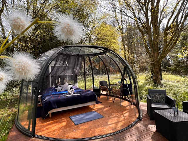 Das Dôme Atmo'sphère bietet eine einzigartige Unterkunft in Form eines luxuriösen Zeltes. Das Zelt verfügt über einen eigenen Pool, in dem Sie sich abkühlen und entspannen können. Die Terrasse bietet einen herrlichen Blick auf die Umgebung. Handtücher und Bettwäsche werden gestellt, um Ihren Aufenthalt so komfortabel wie möglich zu gestalten.