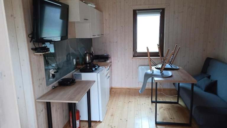 Das Ferienhaus verfügt über 2 Schlafzimmer, ein Wohnzimmer und eine gut ausgestattete Küchenzeile, die den Gästen ermöglicht, selbstständig zu kochen und die Unterkunft nach ihren Wünschen zu gestalten.