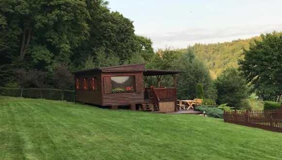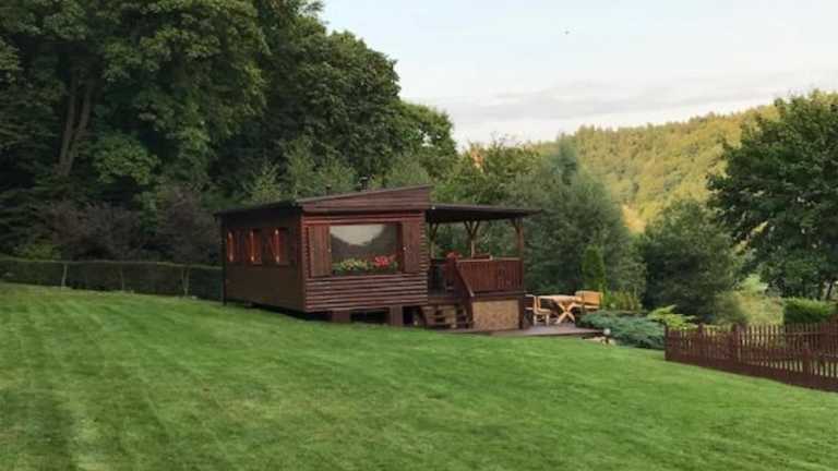 Domek letniskowy "Domek w zieleni" ist eine Lodge, die über eine Terrasse und einen Balkon mit Flussblick verfügt. Sie bietet eine ruhige Umgebung und einen Garten zur Erholung sowie kostenlosen Privatparkplatz.