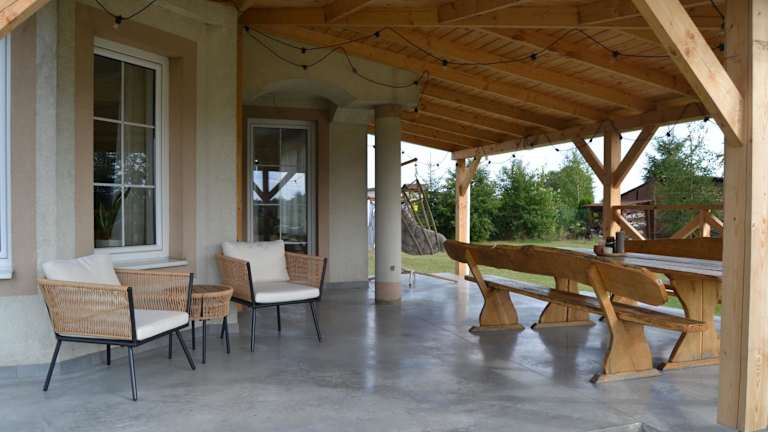 Die Villa im Domek mamy verfügt über 4 geräumige Schlafzimmer, ein gemütliches Wohnzimmer und eine gut ausgestattete Küche mit Kühlschrank und Geschirrspüler. Es gibt auch 2 Badezimmer mit Dusche. Handtücher und Bettwäsche werden gestellt, so dass Sie sich um nichts kümmern müssen. Vom Balkon oder der Terrasse aus haben Sie einen wunderschönen Blick auf den Garten.