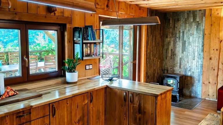 Im DOMEK NA GÓRACH z GORĄCĄ BALIĄ steht Ihnen eine Gemeinschaftsküche zur Verfügung, in der Sie Ihre eigenen Mahlzeiten zubereiten können. Nutzen Sie den Grill, um im Freien köstliche Gerichte zuzubereiten und genießen Sie diese auf der Terrasse mit Blick auf die Berge.