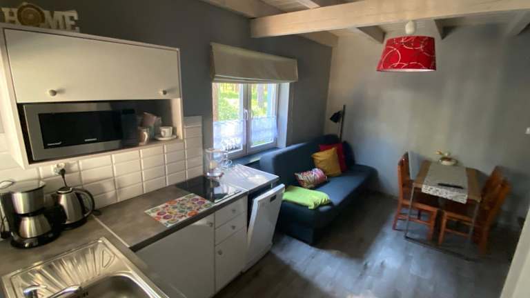 Das Domek na Leśnej bietet eine voll ausgestattete Küche, so dass Sie Ihre eigenen Mahlzeiten zubereiten können. Alternativ können Sie auch den Grillplatz nutzen, um ein köstliches Barbecue im Freien zu genießen. In der Umgebung gibt es auch verschiedene Restaurants, in denen Sie lokale Spezialitäten probieren können.