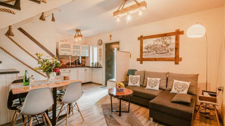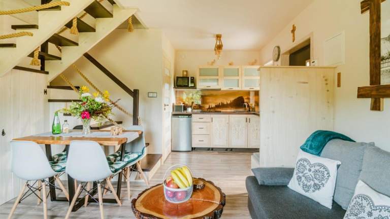 Das Domek na Przylasku bietet gemütliche Unterkünfte mit Balkonen, die Ihnen einen herrlichen Blick auf die Umgebung bieten. Jede Unterkunft verfügt über eine voll ausgestattete Küche mit Mikrowelle, einen Kamin, einen komfortablen Sitzbereich mit Sofa, einen Flachbild-TV und ein eigenes Badezimmer mit Dusche. In den Unterkünften finden Sie auch einen Kühlschrank, ein Kochfeld und einen Wasserkocher für Ihre Bequemlichkeit.
