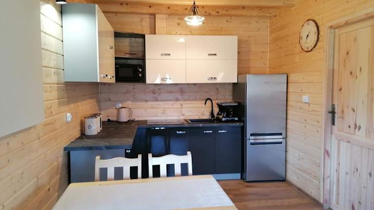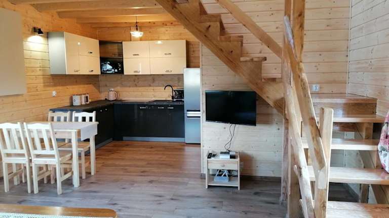 Domek na wzgórzu 'WILK' ist eine Ferienwohnung, die eine Terrasse und einen Balkon bietet. Die Unterkunft ist mit kostenlosem WLAN und Privatparkplätzen ausgestattet und ermöglicht den Gästen die Nutzung eines Grills.