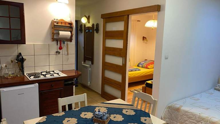 Domek przy lesie Mazury - noclegi całoroczne ist eine ganzjährige Unterkunft, die verschiedene Annehmlichkeiten wie kostenloses WLAN und Grillmöglichkeiten bietet. Die Unterkunft wird von einem privaten Gastgeber geführt und verfügt über einen Garten sowie einen kostenlosen Privatparkplatz. Die Zimmer sind Nichtraucherzonen. Es gelten besondere Regelungen für die Unterkunft von Kindern und Haustieren. Junggesellenabschiede und ähnliche Feiern sind nicht gestattet.