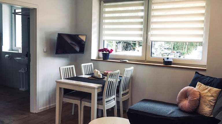 Das DOMEK U MARKA Zator bietet Selbstversorgungsmöglichkeiten in der voll ausgestatteten Küchenzeile des Apartments. Alternativ können Sie auch den Grill im Garten nutzen und Ihre Mahlzeiten im Freien genießen.
