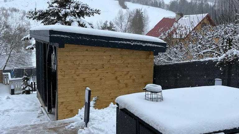 Das Domek w dolinie bietet einen eigenen Pool, in dem Sie sich an warmen Tagen erfrischen können. Für Kinder gibt es einen Spielplatz, auf dem sie sich austoben können. In der Umgebung können Sie Wandern, Skifahren, Angeln und Radfahren. Der Garten des Ferienhauses lädt zum Entspannen ein und bietet Grillmöglichkeiten für gesellige Abende im Freien.