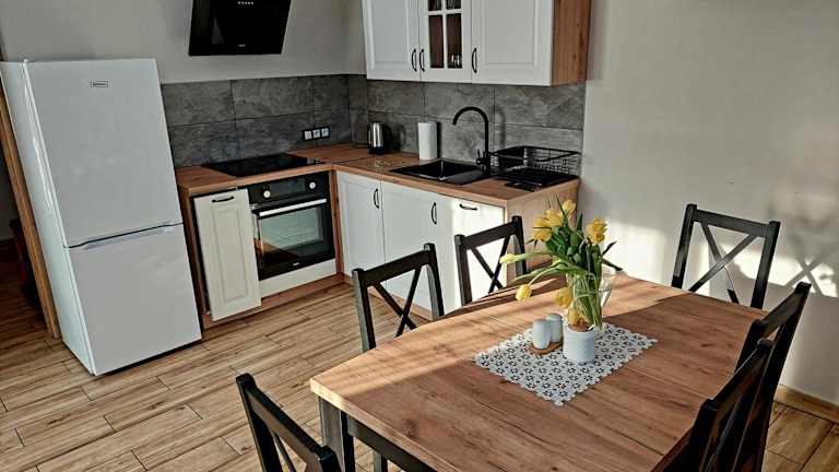 Das Apartment im Domek Wilcze Wzgórze verfügt über 3 gemütliche Schlafzimmer und 1 Badezimmer. Es bietet Platz für eine komfortable Übernachtung und ist mit allem ausgestattet, was Sie für einen angenehmen Aufenthalt benötigen. Das Apartment bietet zudem einen Flachbild-TV, einen Essbereich und eine voll ausgestattete Küchenzeile. Die Terrasse bietet einen herrlichen Blick auf die umliegende Berglandschaft.