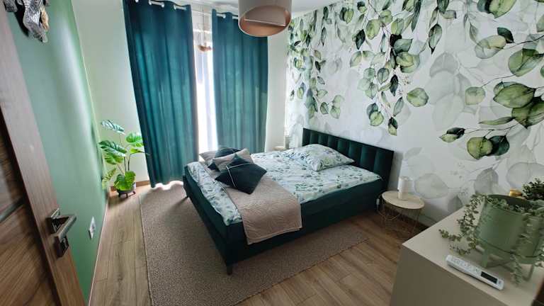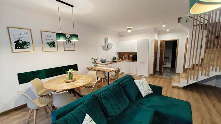 Domek Zielone Marzenie ist eine Ferienwohnung, die eine ruhige und grüne Umgebung bietet. Die Unterkunft verfügt über kostenlose Fahrräder und eine Terrasse.