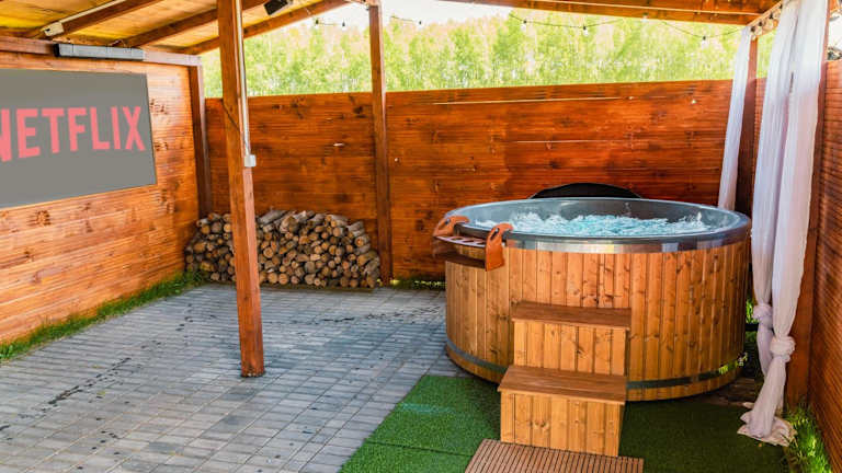 Während Ihres Aufenthalts in der Villa können Sie den Innenpool und den Whirlpool nutzen. Es gibt auch einen Kinderspielplatz, der den kleinen Gästen viel Spaß bietet.