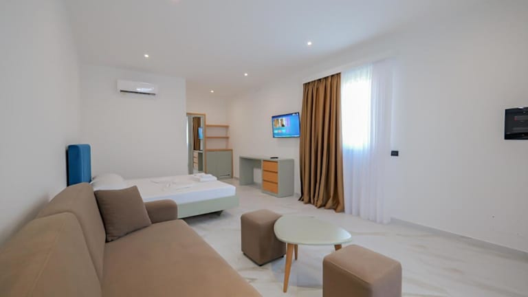 Das Domi Beach Valley in Dhërmi bietet eine ideale Unterkunft für einen entspannten und komfortablen Aufenthalt. Mit herrlichem Bergblick, einem Restaurant, Zimmerservice und einer Bar ist das Hotel bestens ausgestattet. Das kostenlose WLAN und die Privatparkplätze sorgen für zusätzlichen Komfort. Die Zimmer sind modern eingerichtet und verfügen über Annehmlichkeiten wie Klimaanlage, Flachbild-TV und Kühlschrank. Jeden Morgen können Sie sich auf ein köstliches kontinentales Frühstück freuen. Der Strand Palasa ist nur 600 m entfernt und der Flughafen Ioannina erreichen Sie nach 163 km.