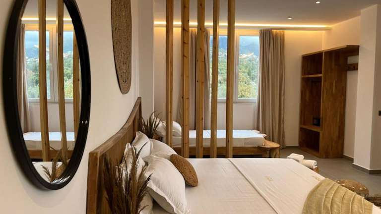 Das Domi Beach Valley in Dhërmi bietet eine ideale Unterkunft für einen entspannten und komfortablen Aufenthalt. Mit herrlichem Bergblick, einem Restaurant, Zimmerservice und einer Bar ist das Hotel bestens ausgestattet. Das kostenlose WLAN und die Privatparkplätze sorgen für zusätzlichen Komfort. Die Zimmer sind modern eingerichtet und verfügen über Annehmlichkeiten wie Klimaanlage, Flachbild-TV und Kühlschrank. Jeden Morgen können Sie sich auf ein köstliches kontinentales Frühstück freuen. Der Strand Palasa ist nur 600 m entfernt und der Flughafen Ioannina erreichen Sie nach 163 km.