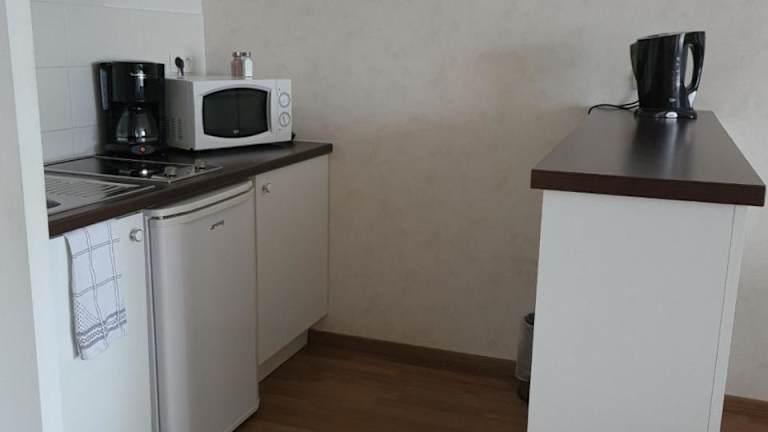 Die geräumigen Ferienwohnungen im Domitys Le Jardin des Lys verfügen alle über ein gemütliches Wohnzimmer mit einem Flachbild-TV, einen Kleiderschrank und ein Bad mit Bademänteln und Hausschuhen. Die Küchenzeile ist mit einem Kochfeld, einer Mikrowelle und einem Kühlschrank ausgestattet.