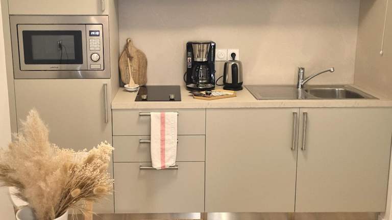 Die Zimmer in der Unterkunft sind mit einem Balkon, einem Sitzbereich, einem Flachbild-TV und einer voll ausgestatteten Küche ausgestattet. Dazu gehören Kühlschrank, Mikrowelle, Herdplatte, Toaster, Kaffeemaschine und Wasserkocher. Jedes Zimmer bietet ein eigenes Badezimmer mit Dusche und kostenlosen Pflegeprodukten.