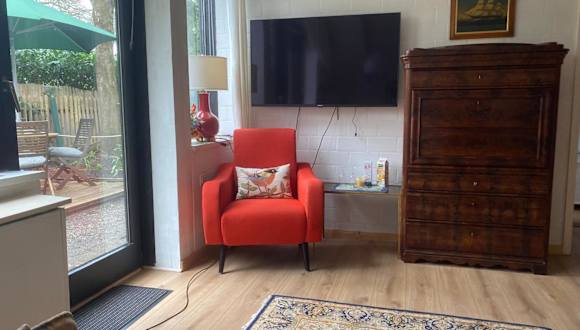 Die Ferienwohnung umfasst ein Schlafzimmer, ein Badezimmer mit Dusche, ein Wohnzimmer und einen Essbereich. Zur Ausstattung gehören eine Küche mit Kühlschrank, Geschirrspüler und Ofen sowie ein Blu-ray-Player. Handtücher, Bettwäsche und WLAN sind ebenfalls im Angebot enthalten.