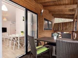 Die Übernachtungsmöglichkeiten verfügen über eine Terrasse mit Gartenblick, einen Sitzbereich sowie einen Satelliten-Flachbild-TV. Eine voll ausgestattete Küchenzeile mit Kühlschrank, Mikrowelle, Herdplatte, Kaffeemaschine und Wasserkocher ist ebenfalls vorhanden. Jedes Zimmer hat ein eigenes Badezimmer mit Dusche.