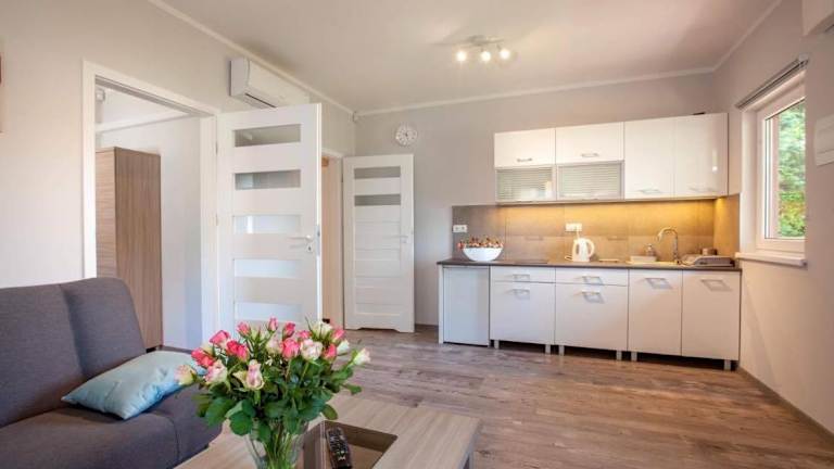 Domki Bożkowice bietet Übernachtungsmöglichkeiten mit einem Garten, einer Terrasse, einer Bar und einem eigenen Strandbereich. Zu den Annehmlichkeiten gehören auch Grillmöglichkeiten, die den Gästen zur Verfügung stehen.