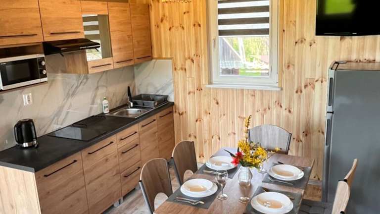 Die Domki całoroczne U Iwony ist eine private Unterkunft, die in einem ruhigen Umfeld gelegen ist und eine Terrasse mit Gartenblick bietet. In der Unterkunft sind keine Feierlichkeiten wie Junggesellenabschiede erlaubt. Die Mindestanforderung für den Check-in beträgt 18 Jahre, während Kinder jeden Alters willkommen sind.