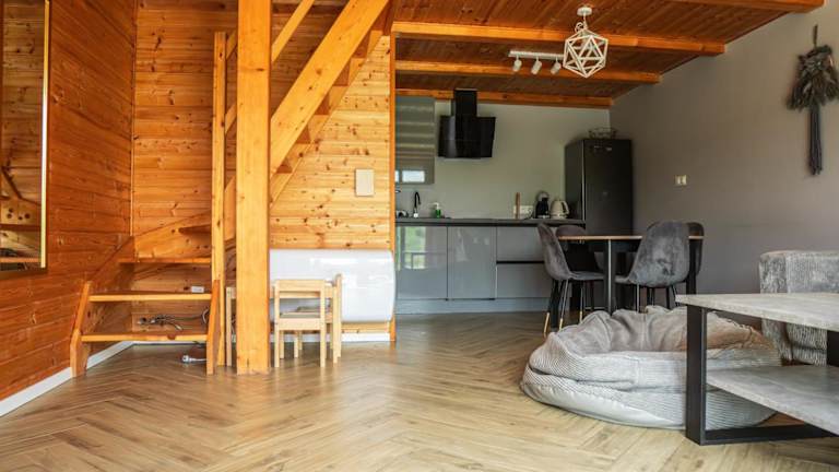 Domki Nad Stawami z Jacuzzi i Sauną 1 bietet Übernachtungsmöglichkeiten in einem Ferienhaus mit Blick auf den See. Die Unterkunft verfügt über eine Veranda/Patio und einen Garten. Die Gäste können auch auf einer Terrasse entspannen, die zudem Bergblick bietet.