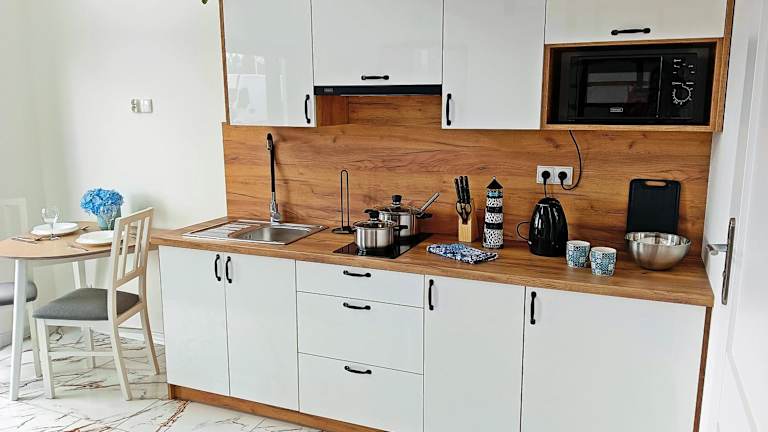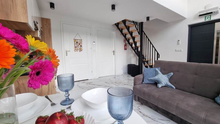 Die Unterkunft befindet sich in Gąski, etwa 24 km vom Rathaus und 25 km vom Bahnhof Kolberg entfernt. Der nächstgelegene Strand ist 500 m entfernt. Die Umgebung bietet Zugang zu Sehenswürdigkeiten wie dem Kolberg Leuchtturm (26 km) und dem Bahnhof Mielno (13 km). Der Flughafen Stettin-Goleniów ist 129 km entfernt.