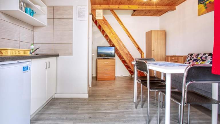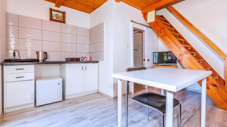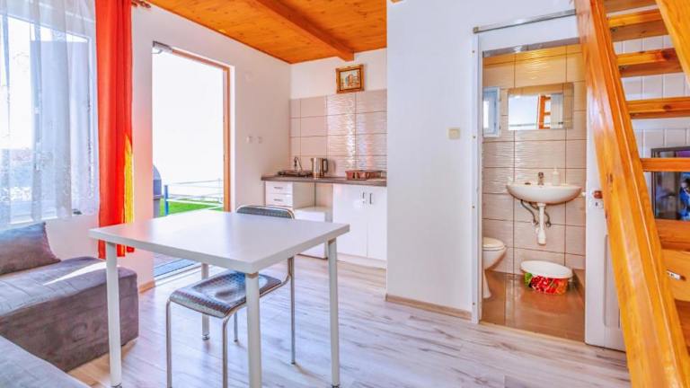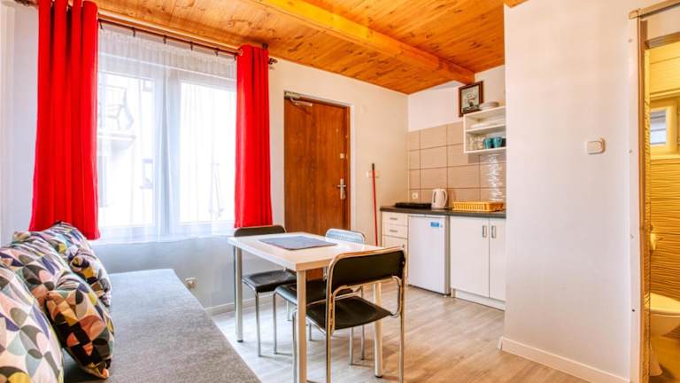 Die Zimmer im Domki Olivia sind komfortabel eingerichtet und bieten alles, was Sie für einen angenehmen Aufenthalt benötigen. Zur Ausstattung gehören ein Flachbild-TV und ein gemütlicher Sitzbereich. Die Küchenzeile ist komplett ausgestattet mit einem Kühlschrank und Küchenutensilien, so dass Sie Ihre eigenen Mahlzeiten zubereiten können. Das Badezimmer verfügt über eine erfrischende Dusche.