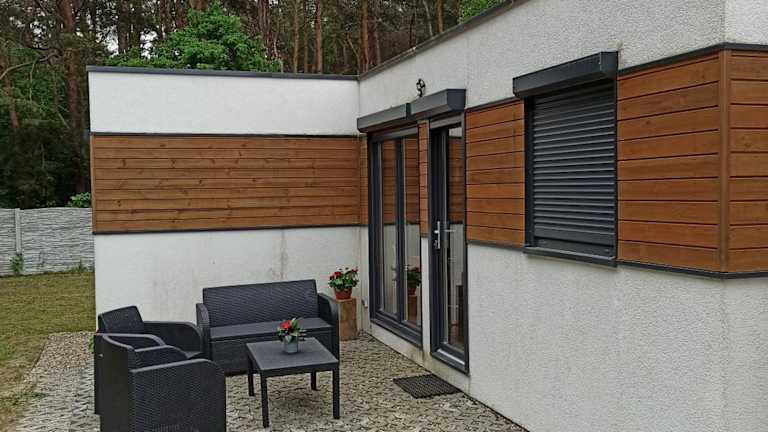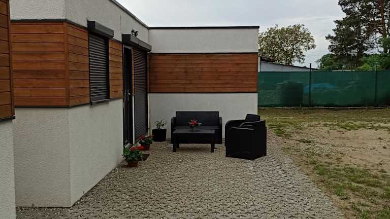 Das Domki pod Sosnami in Międzychód ist die perfekte Unterkunft für einen entspannten Aufenthalt inmitten der Natur. Die klimatisierten Unterkünfte bieten allen Komfort, den Sie benötigen, und der Zugang zu einem Garten mit Kinderspielplatz sorgt für Spaß für die ganze Familie. Genießen Sie die Terrasse mit Blick auf den Garten und entspannen Sie sich im gemütlichen Wohnbereich. Die voll ausgestattete Küchenzeile ermöglicht es Ihnen, Ihre eigenen Mahlzeiten zuzubereiten, und die Grillmöglichkeiten bieten eine weitere Option für ein leckeres Essen im Freien.