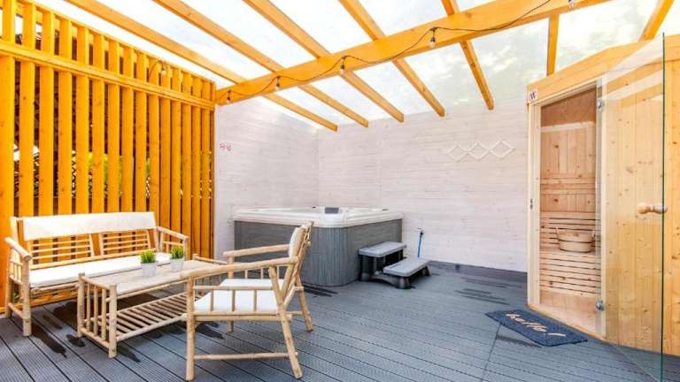Das Domki u Grażyny in Dębki bietet Ihnen eine komfortable Unterkunft in der Region Pommern. Mit kostenfreiem WLAN, einem Kinderspielplatz und kostenlosen Fahrrädern können Sie Ihren Aufenthalt in vollen Zügen genießen. Die gut ausgestatteten Ferienhäuser verfügen über eine Terrasse mit Blick auf den Garten, einen gemütlichen Sitzbereich und eine voll ausgestattete Küche. Der nahe gelegene Strand und der Bahnhof sind bequem zu erreichen.