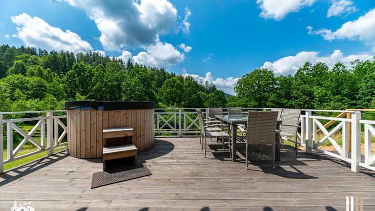 Die Unterkünfte im Domki w Rudawach Las i Łąka Gorąca Balia Baseny sind klimatisiert und verfügen über eine Terrasse, auf der Sie entspannen können. Die Küche ist gut ausgestattet mit einem Kühlschrank, einem Geschirrspüler, einem Backofen und einer Kaffeemaschine, so dass Sie Ihre eigenen Mahlzeiten zubereiten können. Ein besonderes Highlight ist der Whirlpool im Ferienhaus, der Ihnen eine erholsame Auszeit bietet.