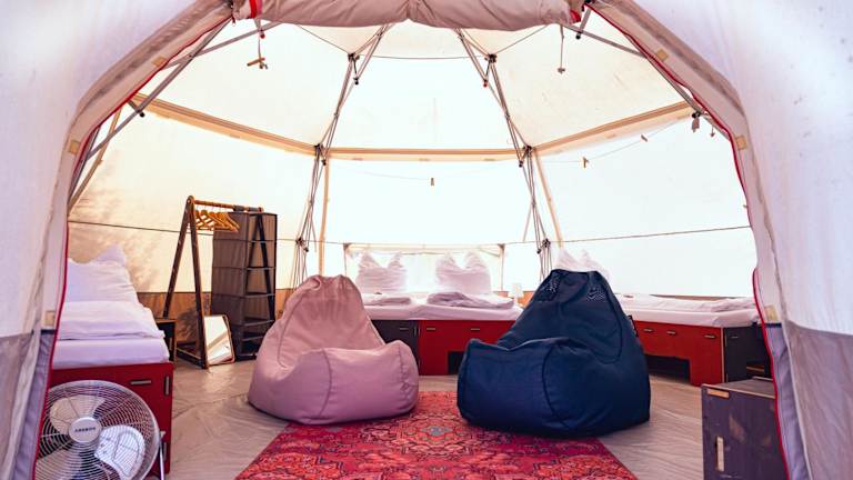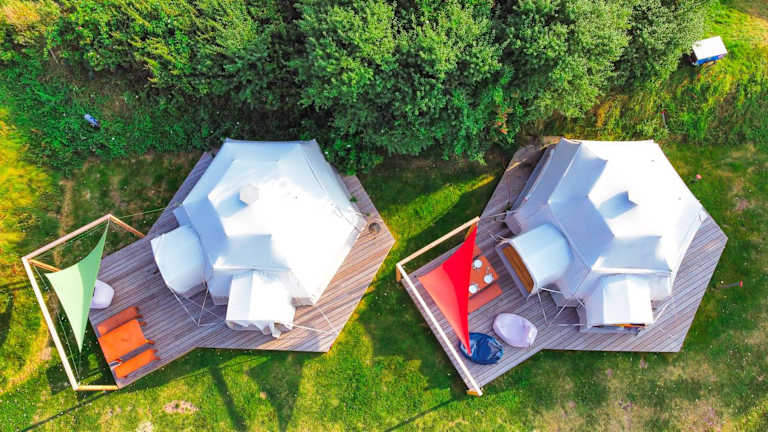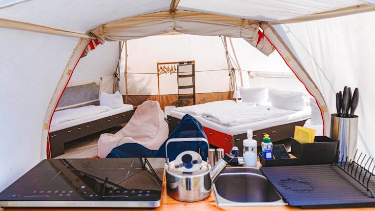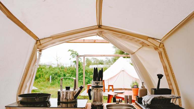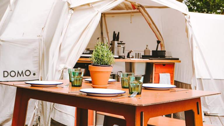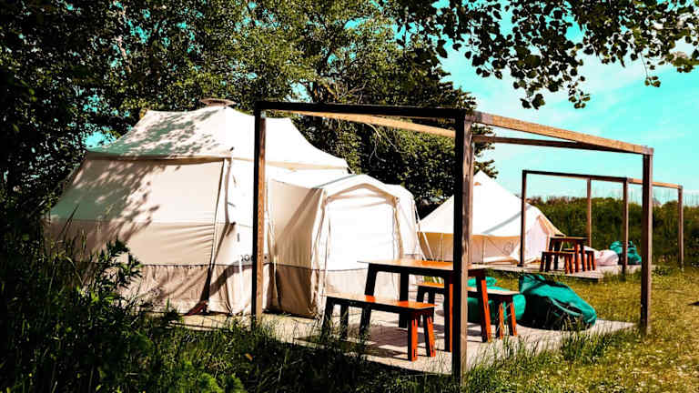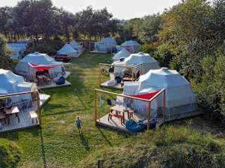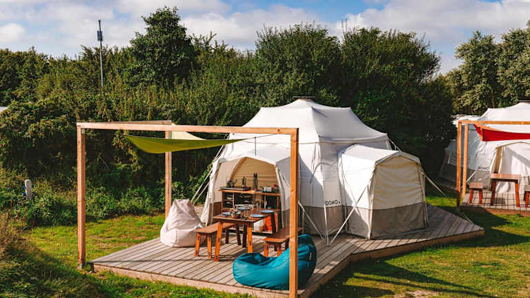 DOMO CAMP Sylt - Glamping Camp bietet Übernachtungsmöglichkeiten inmitten der Natur, ergänzt durch einen Garten, eine Terrasse und eine Gemeinschaftsküche. Es handelt sich um eine Glamping-Unterkunft, die eine besondere Art des Campens verkörpert.