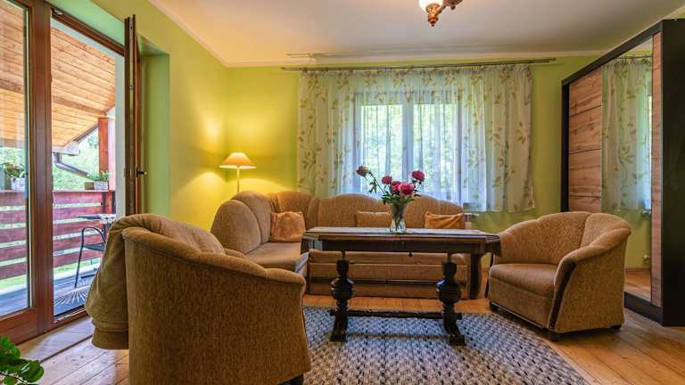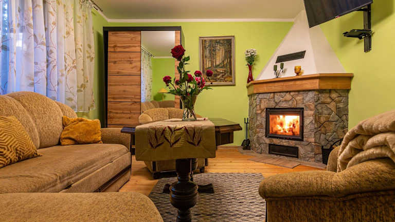 Das Domowe Zacisze w Nickulinie liegt nur 8,2 km von der Johannes-Paul-II-Route in Beskid Zywiecki und 30 km vom Skigebiet Zagron Istebna entfernt. Die Lage ermöglicht es Ihnen, die umliegende Natur zu erkunden und Aktivitäten wie Skifahren und Wandern zu genießen. In der Nähe befinden sich auch das Konferenzzentrum Dębina und das Skimuseum, die einen Besuch wert sind. Der Flughafen Ostrava ist etwa 110 km vom Ferienhaus entfernt.