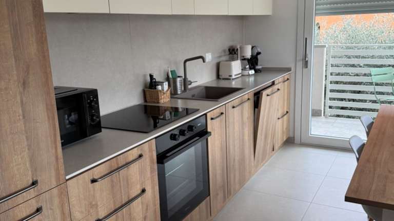 Die Ferienwohnung besteht aus 2 Schlafzimmern, einem Wohnzimmer, einer voll ausgestatteten Küche mit Kühlschrank und Kaffeemaschine sowie 2 Badezimmern mit Bidet und Dusche. Handtücher und Bettwäsche werden bereitgestellt, und die Unterkunft ist klimatisiert.