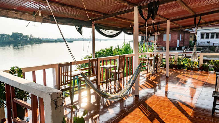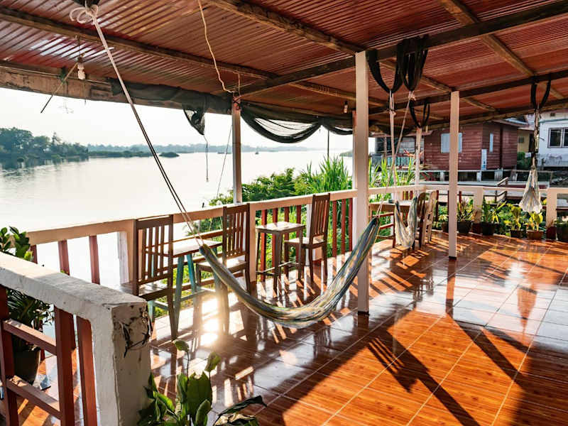 Das Don Det Mr.B Riverside Budget Guesthouse bietet einen schönen Garten und eine Terrasse, auf der Sie sich entspannen und die Natur genießen können. In der Umgebung gibt es auch verschiedene Outdoor-Aktivitäten wie Wandern, Radfahren und Bootsfahrten, die Sie unternehmen können, um die Umgebung zu erkunden.