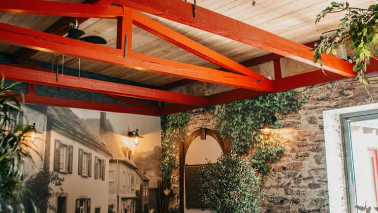 Das Gästehaus Reichshof liegt in Kröv und ist etwa 37 km von der Reichsburg Cochem entfernt. Der Naturpark Saar-Hunsrück und die Arena Trier sind ebenfalls in der Nähe. Der Flughafen Frankfurt-Hahn befindet sich etwa 21 km entfernt. Die Lage der Pension bietet Ihnen die Möglichkeit, die malerische Umgebung zu erkunden und Aktivitäten wie Wandern und Radfahren zu unternehmen.